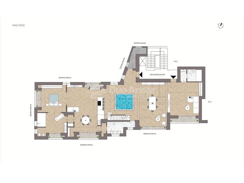 L'appartamento, gode di una quadrupla esposizione che garantisce ampia luminosità, creando un ambiente accogliente e di prestigio. Inoltre, offre la possibilità unica di personalizzare gli spazi in base alle proprie preferenze, per rendere ogni stanza un riflesso del proprio stile di vita. Tra le caratteristiche più esclusive dell'immobile, la predisposizione per installazione di una piscina sia interna con lucernario meccanizzato sia esterna, sul terrazzo.
